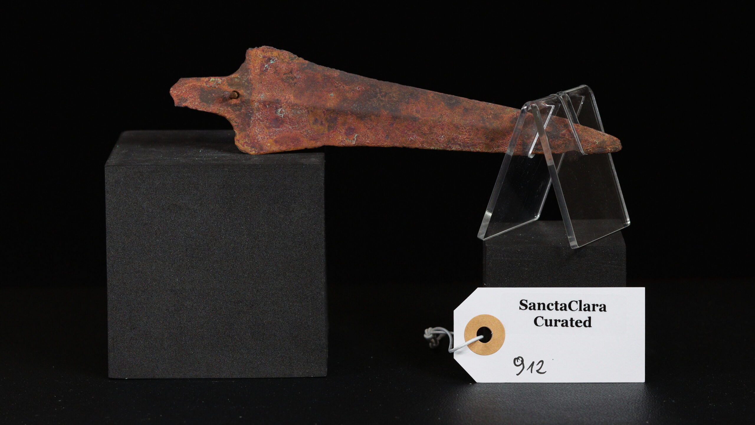 The ferromagnetic properties and rusty surface indicate that the dagger was not cast from a pristine oxide ore (like malachite), but rather from a complex sulfidic copper-iron ore such as chalcopyrite (CuFeS2).During the Early to Middle Bronze Age, surface-level oxide ores became depleted, forcing ancient smelters to mine deeper sulfidic ores. To extract copper from these complex ores, metallurgists developed a co-smelting or fluxing process: