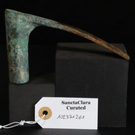Probable Use: This is definitively a fine woodworking tool. An adze of this scale would be used by a Bronze Age carpenter or shipwright for hollowing out wooden bowls, shaping the interior of dugout watercraft, or finishing joints in furniture. The socket exhibits a superb, thick, and highly complex ancient patina—a mixture of green malachite, potentially some blue azurite, and earthy encrustations. However, starting midway down the neck, this crust abruptly vanishes, exposing pitted, reddish metal (cuprite) and bare bronze that has been highly polished. Tools were occasionally found and repurposed in later antiquity (a phenomenon known as "heirloom" or secondary use).